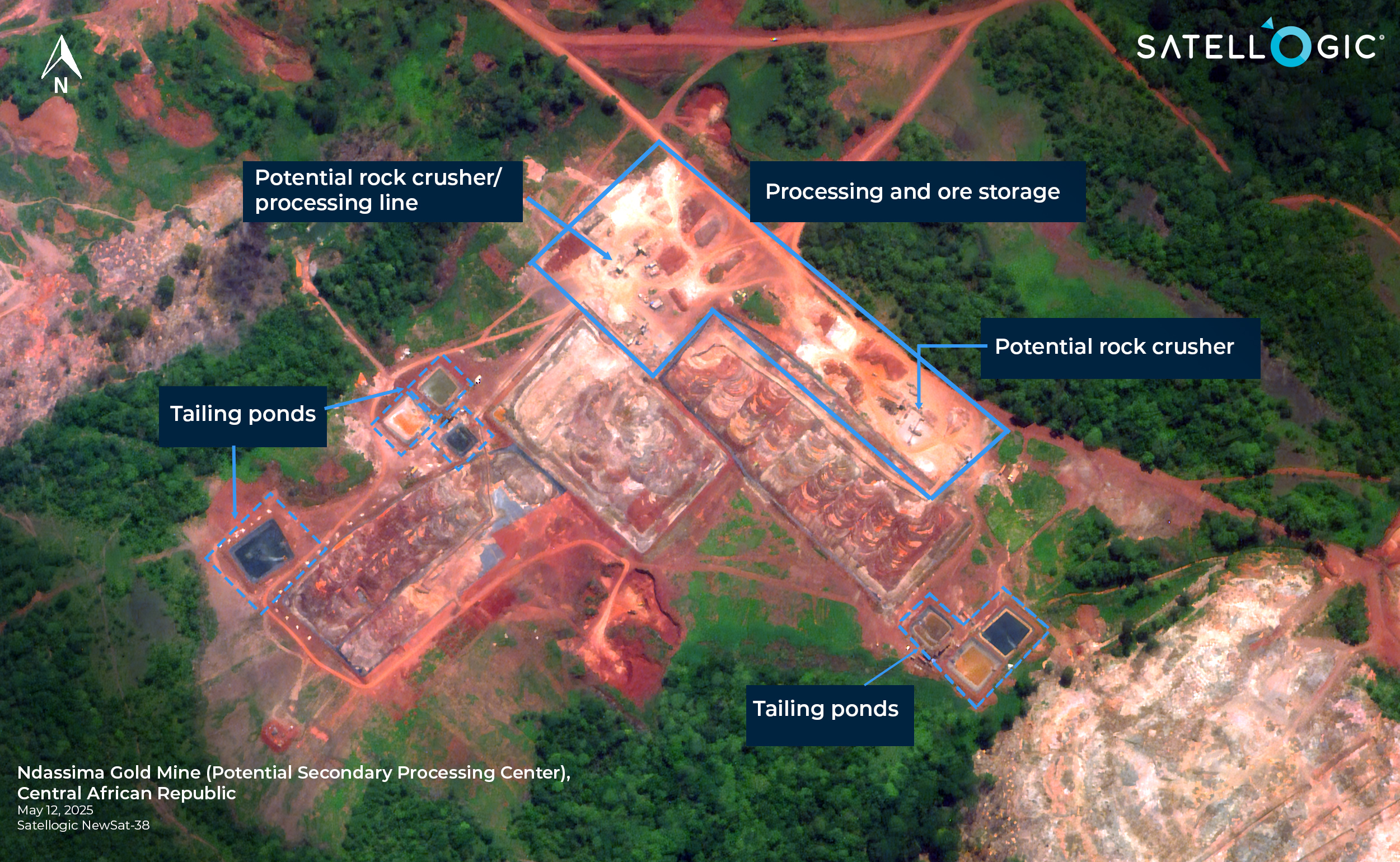 Satellogic imagery collected on May 12, 2025, illustrates Ndassima’s role as a highly organized production facility.